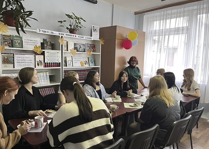 3 октября в библиотеке 3 корпуса Димитровградского технического колледжа был проведен литературно-музыкальный час «Учитель… как много в этом слове» со студентами гр. Л-11.