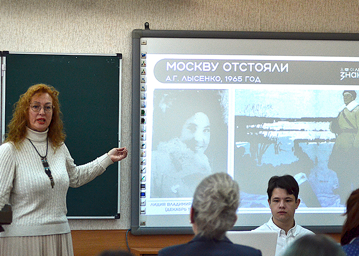Кроме того, Ирина Владимировна провела авторскую лекцию «Без лишних слов» в рамках регионального этапа Всероссийского конкурса «Знание. Лектор». Центральная мысль лекции заключалась в том, что искусство бережно хранит память о Великой Победе, возвращая человеку гуманизм и способность чувствовать красоту жизни.